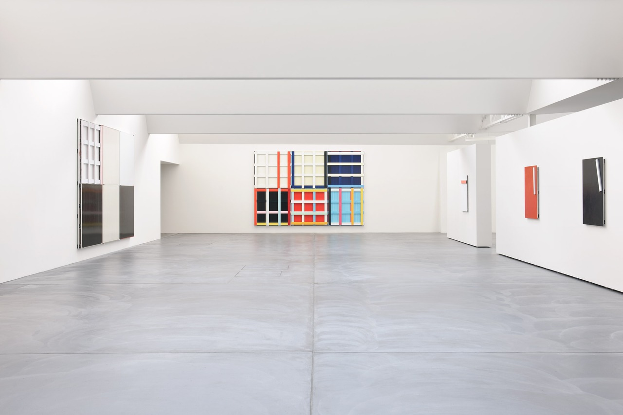 Knoebel studied from 1962 – 64 at the Werkkunstschule (School for Applied Arts) in Darmstadt and moved in 1964, fascinated by the teaching style and personality of Joseph Beuys, to the Kunstakademie (Art Academy) in Düsseldorf. Knoebel, however, distanced himself from the other Beuys students and developed his own, minimalist style, influenced by its great forerunner Kazimir Malevich. Following puristic line drawings, light projections and white paintings (1972 – 75) Knoebel turned to colour for the first time in 1974. During the 1980s the artist experimented with found objects, incorporating them within his installation pieces. Continuing his investigation into the medium of painting, Knoebel has also expanded his practice to an architectural scale; his largest commission to date saw the artist design several stained glass windows for the Notre-Dame de Reims (2011/2015) cathedral. In 2021 Knoebel installed a permanent stained-glass window work, titled ‚Basel‘ at Volkshaus Bar Basel, now called ‚Imis’.