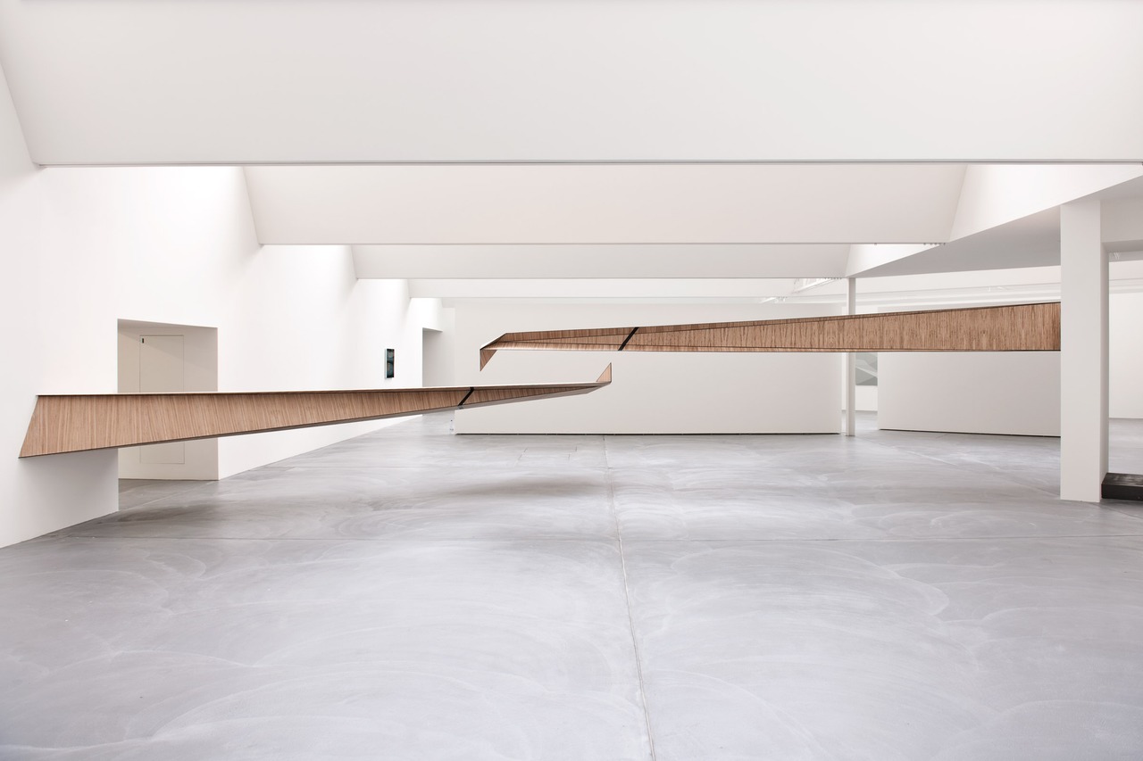 Sarah Oppenheimer is an architectural manipulator. Oppenheimer creates circulatory pathways that establish unexpected kinesthetic and visual relays between bodies and buildings. Gestural manipulation of interwoven instruments alters the contours of surrounding architecture. Rhythms and timescales of living systems flow from body to building and back again. The viewer is transformed into an agent of spatial change.