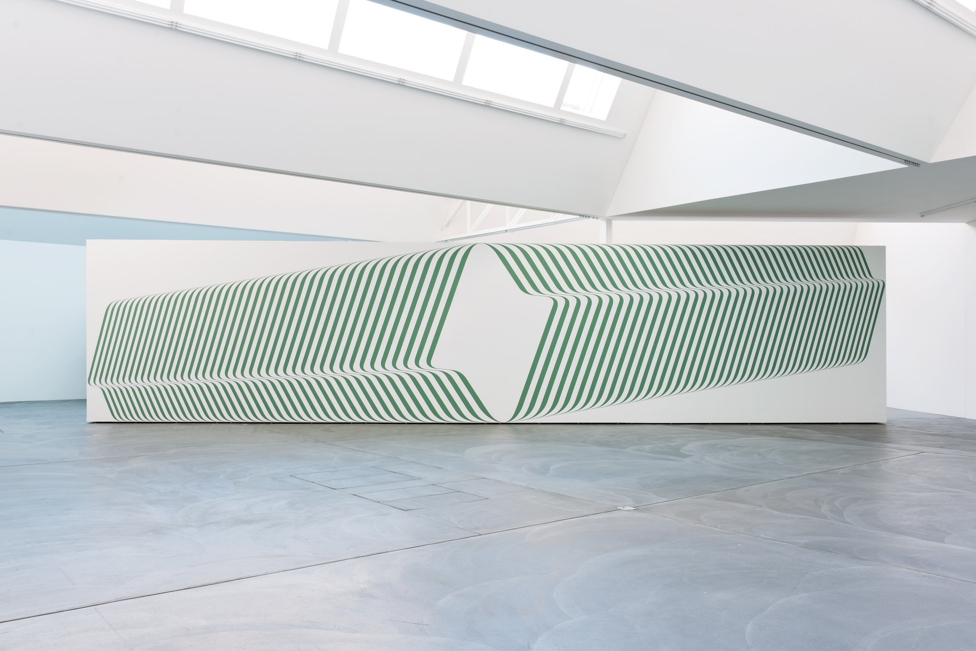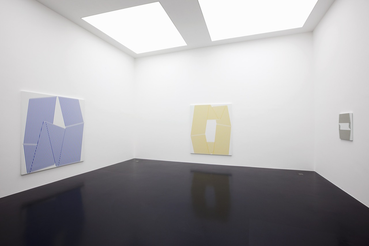 Terry Haggerty was born in London and studied at the Cheltenham School of Art, Gloucestershire. He has exhibited widely at galleries and museums around the world, including Sikkema Jenkins, New York; Max Hetzler, Berlin; Hammer Museum, Los Angeles; Aldrich Museum, Conecticut; and PS1, Long Island City. Commissions include wall drawings for Dallas Cowboys Stadium, Munich Re, London, and private collections in the US and Germany. Haggerty is the recipient of several awards including the For-Site foundation Award(2009), John Anson Kittredge Award (2003); and the Natwest Art Prize (1999). The concept of the trompe-l’oeil; the interplay between reality and illusion, has always fascinated artists. In this way, with the simple gesture of curving lines, Haggerty is able to create complex illusions, garnering both volume and depth. The artist carefully considers ambiguous forms and likenesses, to familiar indicators of space such as ledges, edges, corners and gaps. Nevertheless, the viewer is not only drawn to Haggerty’s paintings as a result of the suggestion of plasticity, but also owing to their cool, smooth, machine-like surface perfection.