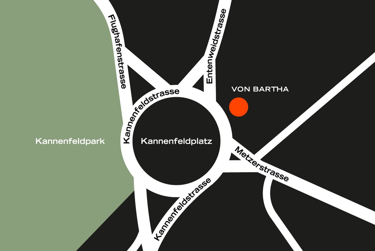 von Bartha gallery moved to its current Kannenfeldplatz 6 Basel venue in April 2008, in the premises of a former car repair shop. Most of the gallery’s activities take place here. Over 700 sqm of exhibition space accommodate up to five contemporary exhibitions a year. In addition to this, the gallery hosts an annual programme of events and special projects. Visitors are welcome during opening hours (see below) and by appointment.