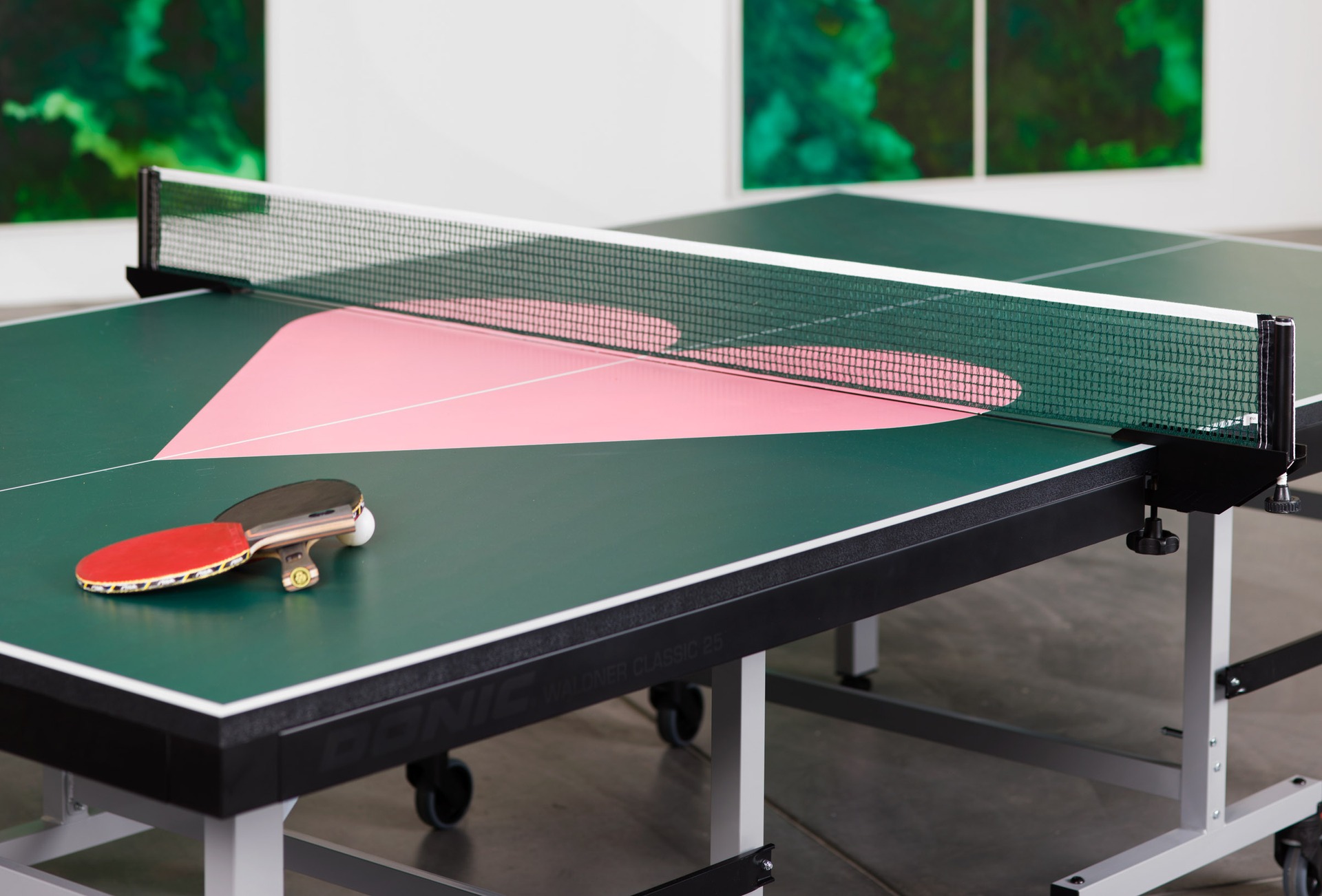 In the 1990s, when Barbara Stauffacher Solomon participated in a group exhibition Visionary San Francisco, she made a series of 12 Ping Pong paintings titled* This Is Not A Ping Pong Table* (1990), the size of ping pong tables, using the table’s green rectangle to evoke the form of parks, gardens, parking lots and public squares. Critics declared her contribution one of the best architectural responses on the “dialectic between the street grid of San Francisco and the concept of play between the idea of urbanity and the arcadia that it has always represented.”