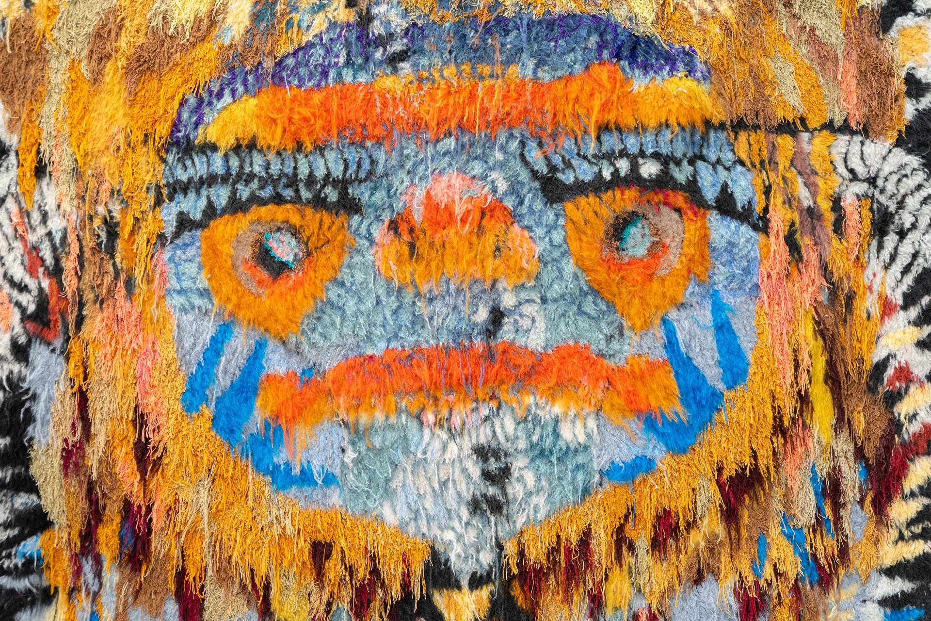 Caroline Achaintre (born 1969 in Toulouse) is known for her large-scale, hand-tufted textile pieces, ceramics, and works on paper. They reveal anthropomorphic forms and indicate a particular interest in animism. Writer Anaël Pigeat recently met Achaintre at the Young V&A in London to discuss her work and her fascination for masks and tapestry. You can read the full article here.