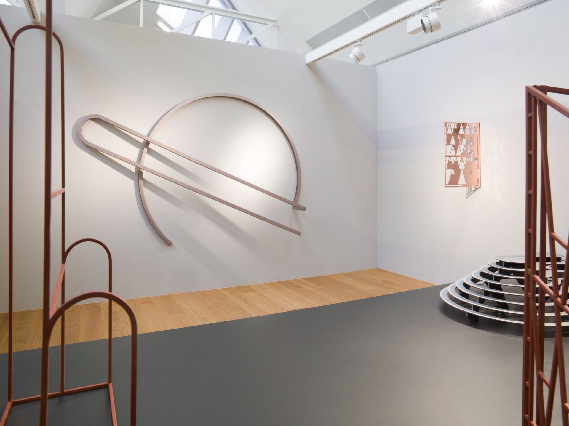 left: Enseigne Nr. 8 (Saturne), 2021, Pulver coated steel, 180 x 240 x 36 cm