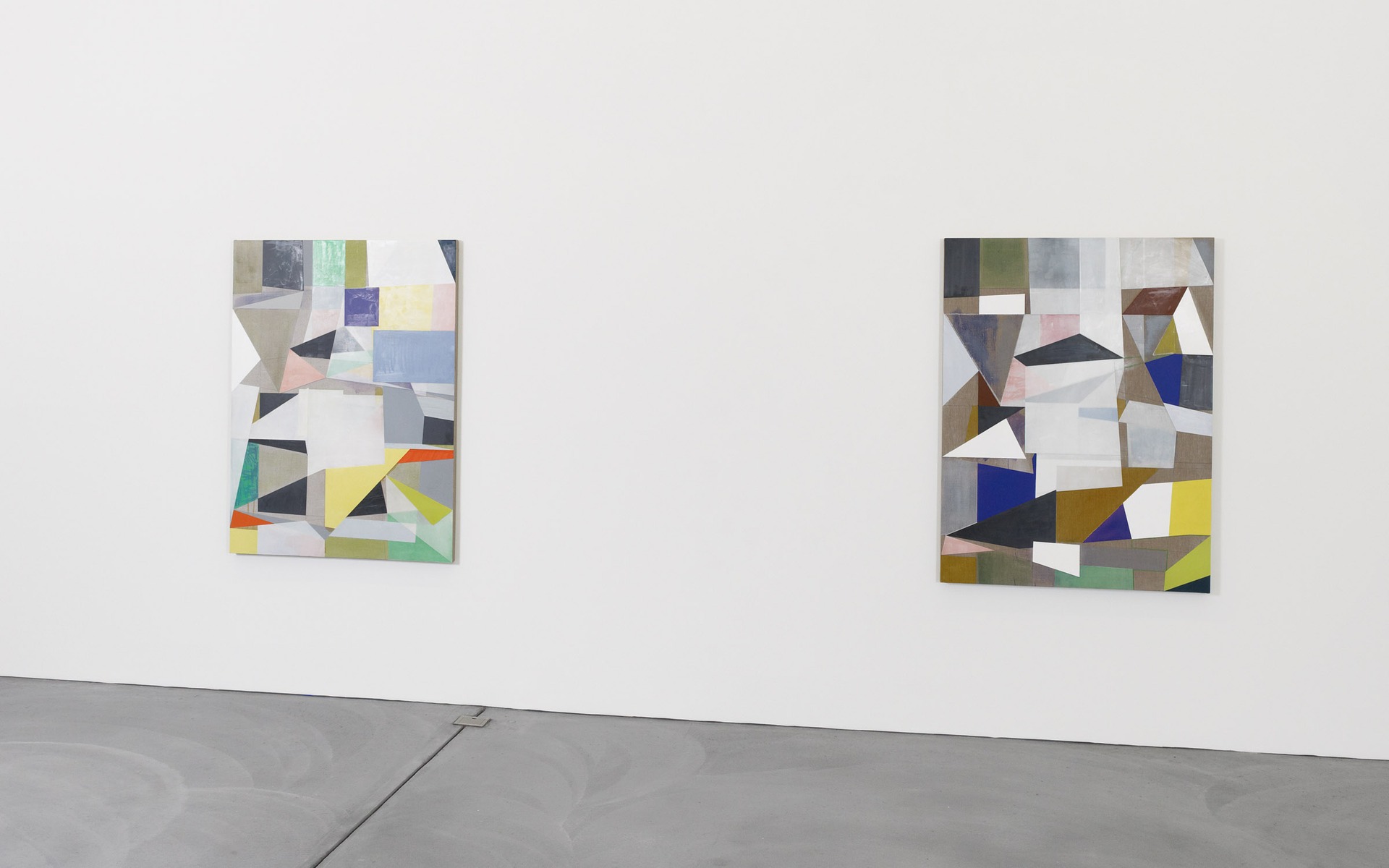 “The work in this exhibition is full of echoes, repeats and part-copies, both of previous paintings and between many of those being shown. Repetitions, cuts, changes, elisions and revisions form a “faulty system” where the ongoing investigation in to how art is generated is also a memory of modernism. Through repetition, whispered quotations become subtly distorted in order to make them more attuned to contemporary attitudes and sensibility. These works use an exaggerated range of materials, from acrylic paint to watercolour via encaustic wax and oil paint. The deliberate stretching out of techniques also reflects a failure of ideas to stand alone, free of the materials with which they are made. In this way solutions become complete within one painting, but at the same time causes of new doubt within the whole process of making art. Doubt, rather than certainty, is the generative force with which they are made. This is both a game and an act of contemplation, concerned with how we might pay attention to new things now and reconsider the methods that created such intensity of visual experience in earlier modes of abstraction.