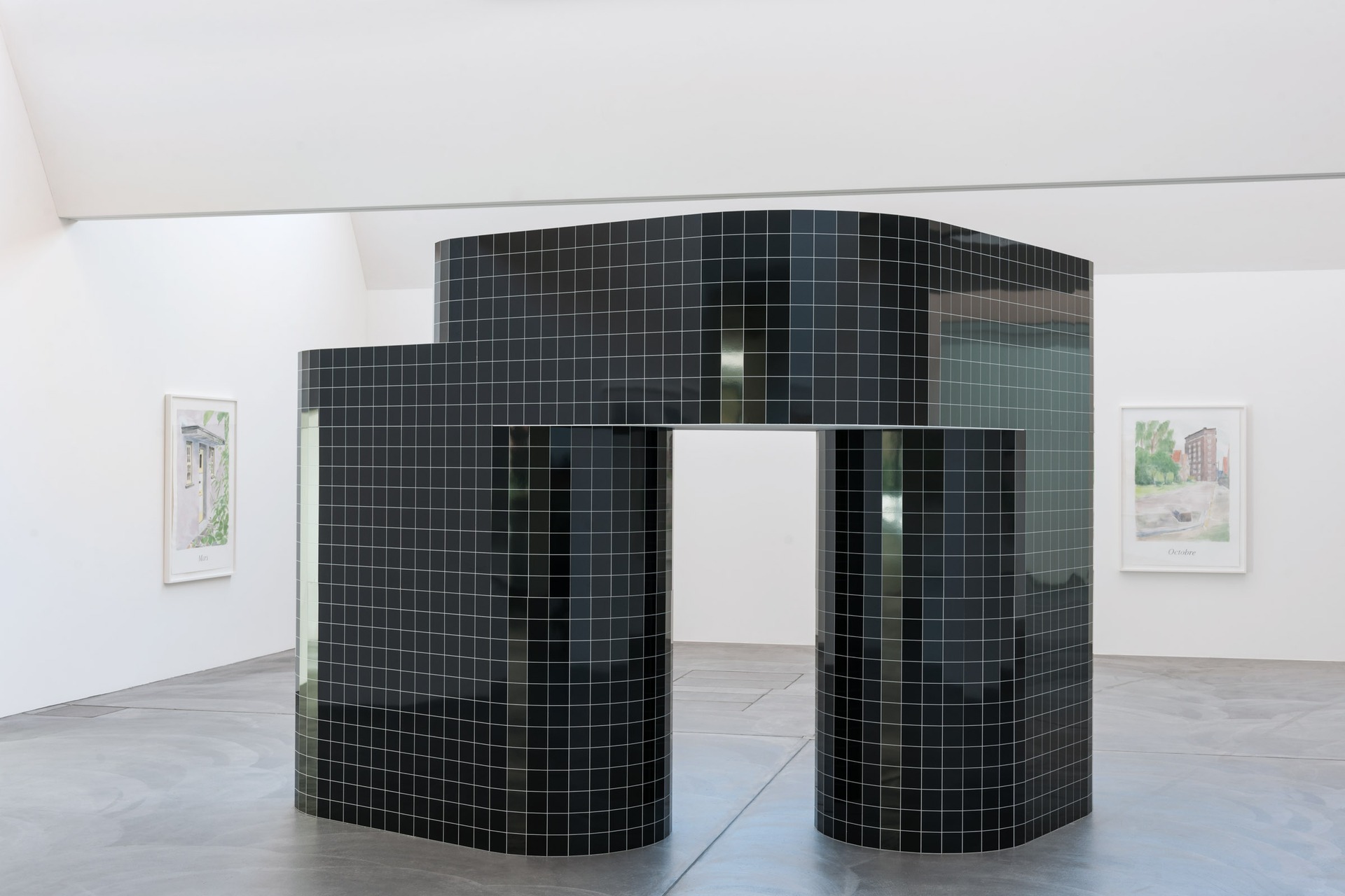 Die Ausstellung Syndrome Temporel erzählt eine an Raum und Zeit gebundene Geschichte. Sie bildet eine Collage/ ein komplexes System aus verschiedenen Zeiten und Bezügen, die in ihren formalen Beschaffenheiten zusammenfindet. Die Skulpturen spielen in ihren Oberflächen und Farbigkeiten mit den Aquarellen, nehmen Bezug zu diesen und/ oder finden ihren Ausgangspunkt in den Zeichnungen. Darüberhinaus spielen die Skulpturen mit dem Raum. Sie greifen in den Realraum der Galerie ein, nehmen ihn auf und verändern die Identität des Ausstellungsraumes, bilden aber auch eigene architektonische Aspekte aus und ermöglichen so eine doppelte Wahrnehmung, sowohl auf visueller als auch auf körperlicher Ebene.