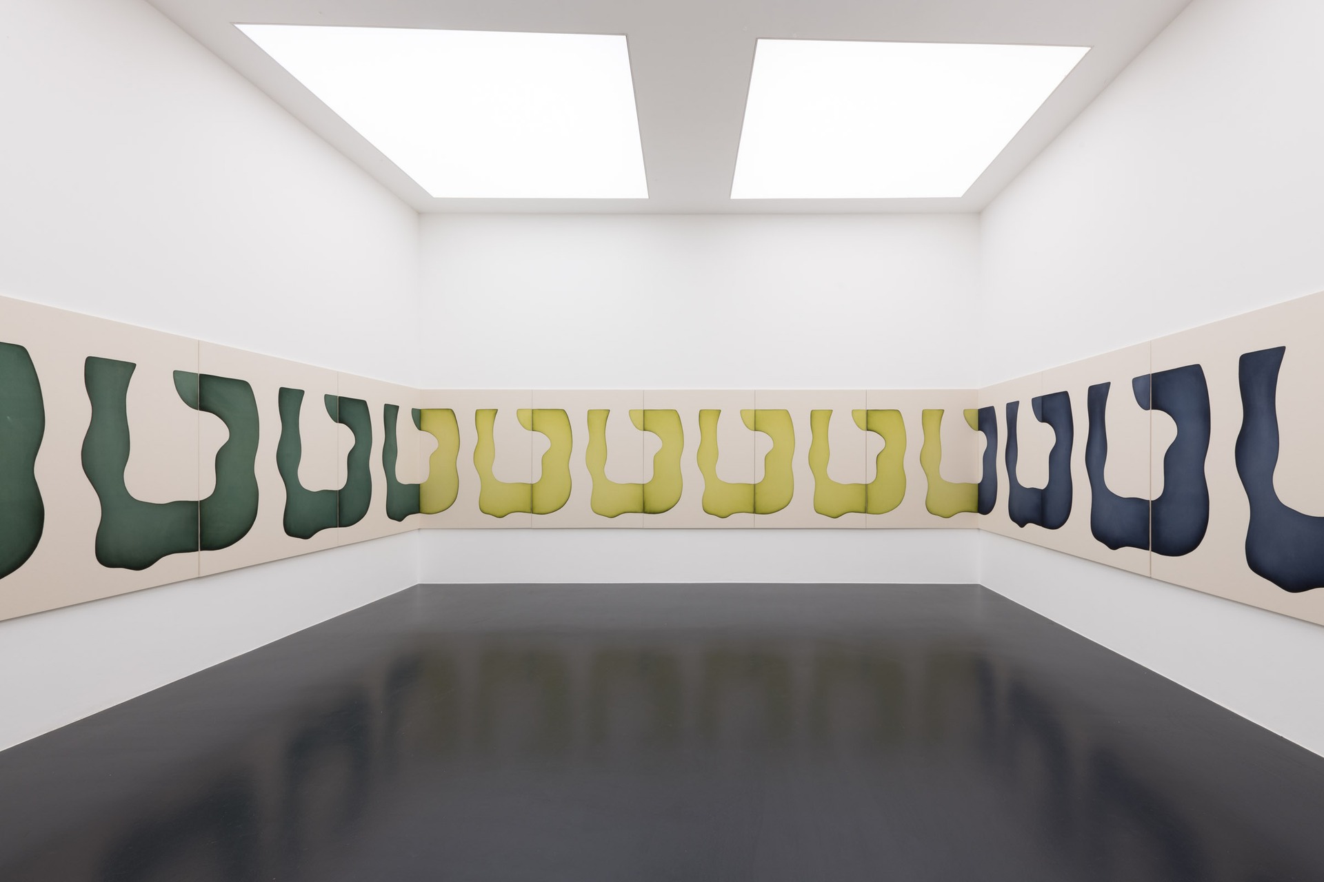 The exhibition at von Bartha tests the ‘fourth wall’ – a concept only perceptible once broken. Like flooding light behind a two-way mirror, to acknowledge an audience mid-narrative is to undermine its anonymity, undercutting any presumed division between what’s on- and offstage. The gesture comes, above all, as an acknowledgment of the external world, an authorial decision which allows context to color ones output. In using one convention to subvert others, it is also a kind of concession, with the work admitting to its own fictions, forcing us to reassess the parameters of medium, delivery, and reception alike. For those inclined, such self-reflexivity can constitute a field of research. Art, after all, functions as a shifting set of narratives (aesthetic, economic, social, cultural, institutional), each and all primed for a turn of the lens: the authorial potential of chance occurrence; the performative nature of presenting (and responding to) artworks; even the broader cultural predispositions surrounding art itself—such precepts may be manipulated like any other material, resulting in work that carries a sense of its own nature while pointing beyond itself towards more expanded views. Moralist philosophy deemed clarity the counterbalance of profound thought: In and beyond theatre, self-awareness would come at the expense of poetry, its effect similar to being roused from a daydream. Morals aside, such ideas endure on stages and screens, in cinemas and, indeed, the gallery space: just as clearness comes at a remove, so is immersion equated with illusion, a willful suspension of disbelief that leaves formalized structures to hide in plain view. Breaking the fourth wall would normally serve to deflate such enthrallments. But to take self-awareness as starting point – to forgo imaginary fields and begin with the wall already leveled, the narratives exposed – and still find the means for immersive experience? So may the author and audience find their roles converged, each now discerning but not distant, both sharing a common stage.