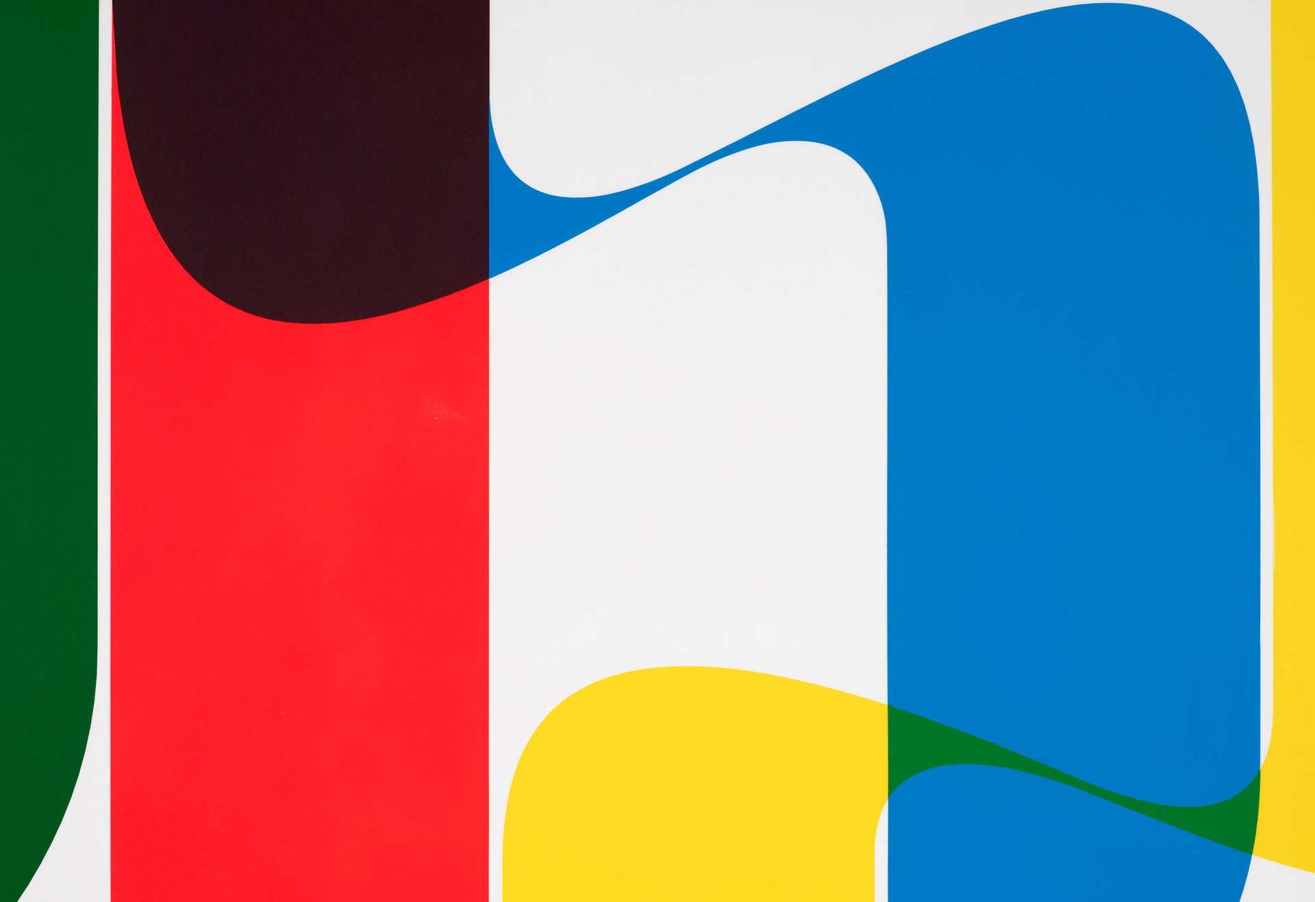 Having been on a journey over the last few months, trying to get out of his comfort zone, painting has served as a vehicle or passage for the British artist, leading him to rediscover the rectangular canvases whilst allowing more openness, translucidity, momentum, and a broader color palette than ever before. Moreover, for the first time, Haggerty introduces new “problems,” as he refers to the overlapping lines in his recent paintings. Despite their high opacity, the physical quality of Haggerty’s painted shapes creates an impression of transparency, where ribbons of color overlap and are stretched and pulled across space, generating complex illusions of volume and depth.