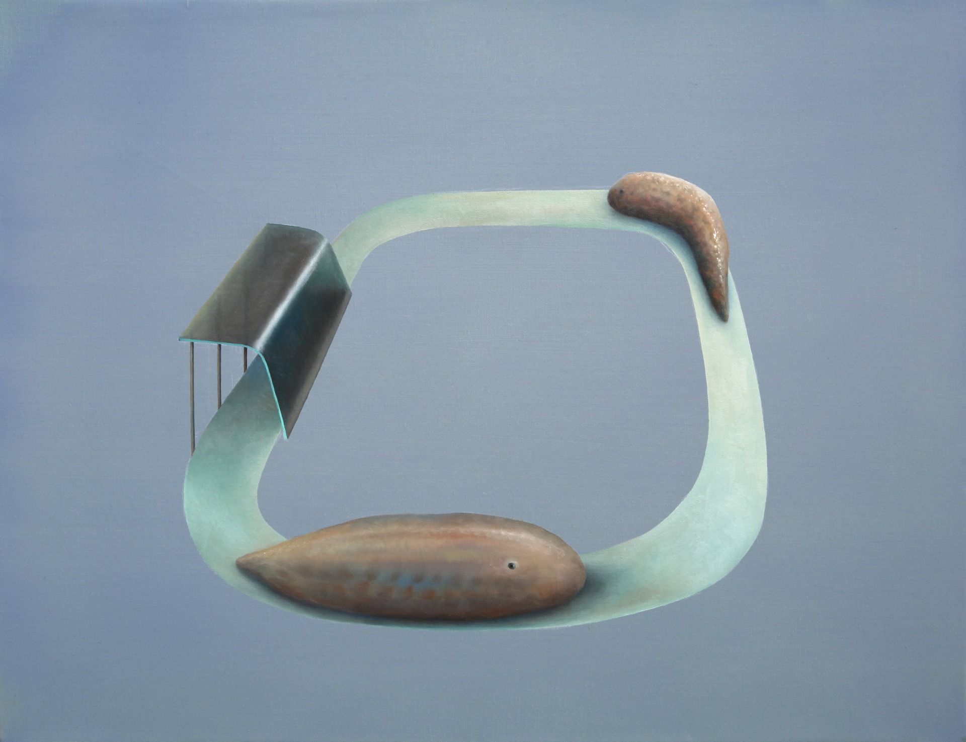 Jahre später erfüllte ich mir meinen in der Zwischenzeit zu einer hübschen Grösse angewachsenen Wunsch, ja Sehnsucht nach einem Gemälde von Francisco Sierra. Ich schenkte es mir selbst zu meinem fünfzigsten Geburtstag (fast hätte ich mir stattdessen eine fette Uhr gekauft … zum Glück besann ich mich noch). Sehr gerne hätte ich das Bild erstanden, an welchem er arbeitete, als ich ihn in seinem über dem Murtensee thronenden Atelier besuchen konnte: Ein 154 mal 235 Zentimeter messendes fotorealistisches Gemälde von drei sich im Bau befindenden Jumbo-Jets. Neun Monate arbeitete Francisco Sierra an dem Werk. Von morgens früh bis tief in die Nacht hinein, Tag für Tag. Das zeugt von der Geduld des Künstlers, von seiner Beharrlichkeit – und von seinem Glauben an das Sujet. Doch ich entschied mich für eine andere Arbeit, denn das Bild der drei Jumbos wäre zu gross gewesen für den Laderaum meines Kombis (klugerweise wurde es unlängst vom Kunsthaus Aarau angekauft, so besteht die reelle Chance, es bald wieder einmal betrachten zu dürfen). Das Bild meiner Wahl misst 40 mal 50 Zentimeter, zeigt eine Möbiusschleife und eine glimmende Pfeife, aus deren Kopf fein der Rauch zwirbelt und sich durch die geschwungenen Bänder der Möbiusschleife schlängelt. Das Bild sagt: Die Glut ist noch heiss – und alles wird immer weitergehen, denn die Dinge waren schon immer und werden auch fortan bestehen. Das „Smoking Moebius“ betitelte Werk schien mir inhaltlich ziemlich gut zu einem fünfzigsten Geburtstag zu passen, also dem Erreichen circa der Hälfte einer sogenannten Lebensspanne.