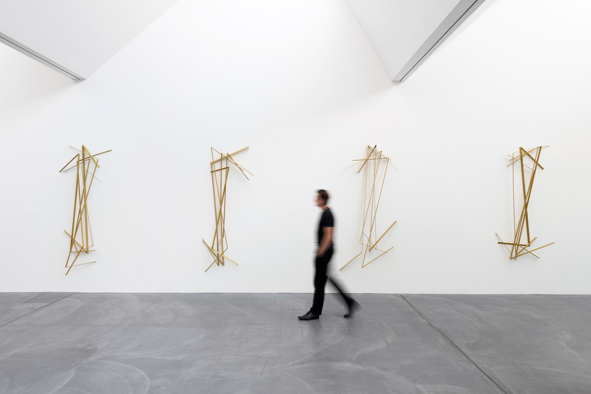 The sculpture, fixed to the wall, seems to move – evoking the figure of a human being. The shadows of the six narrow, line-like profiles, one above the other, strengthen this effect, making the zigzag shape appear like a physical silhouette that moves.
