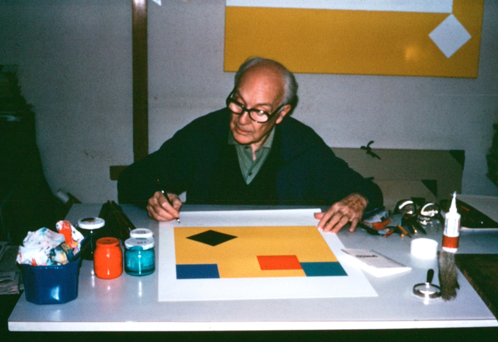 Header image: Camille Graeser signing the serigraph D 1975.2, Translokation in his studio on Hornbachstrasse in Zurich 1975/1976.