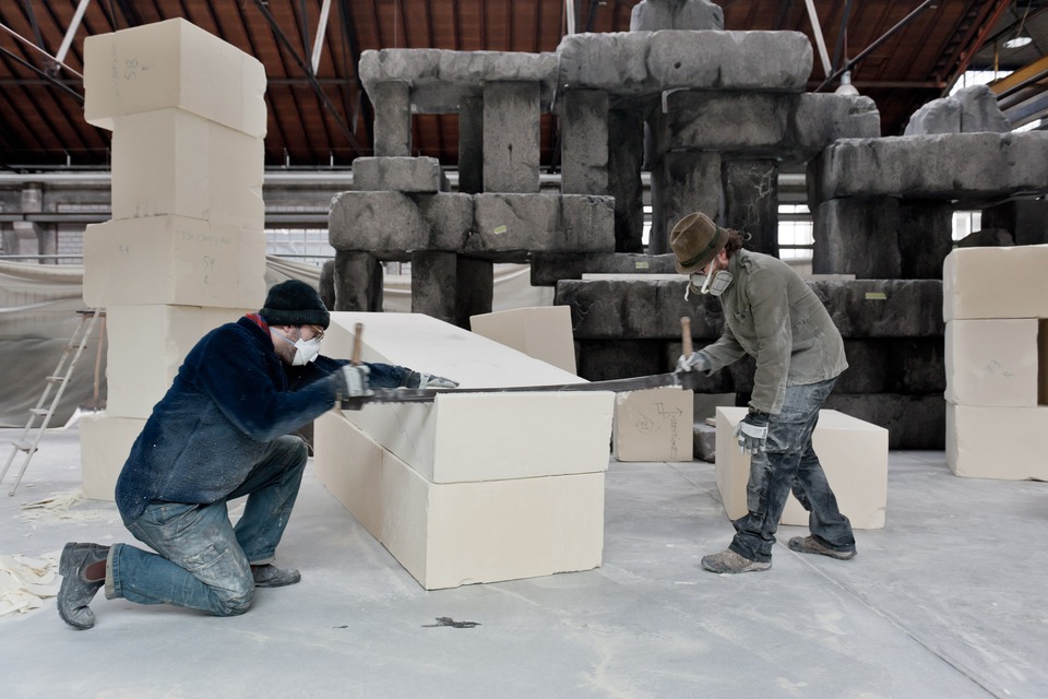 Styrofoam, steel, plaster, paint