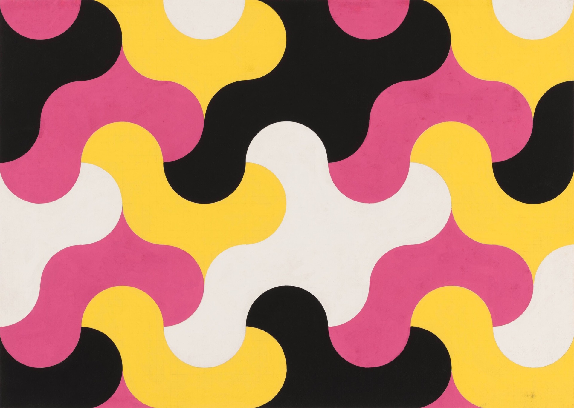 Discover the artist’s never previously shown mosaic-like patterns, which were intended for decorative fabrics