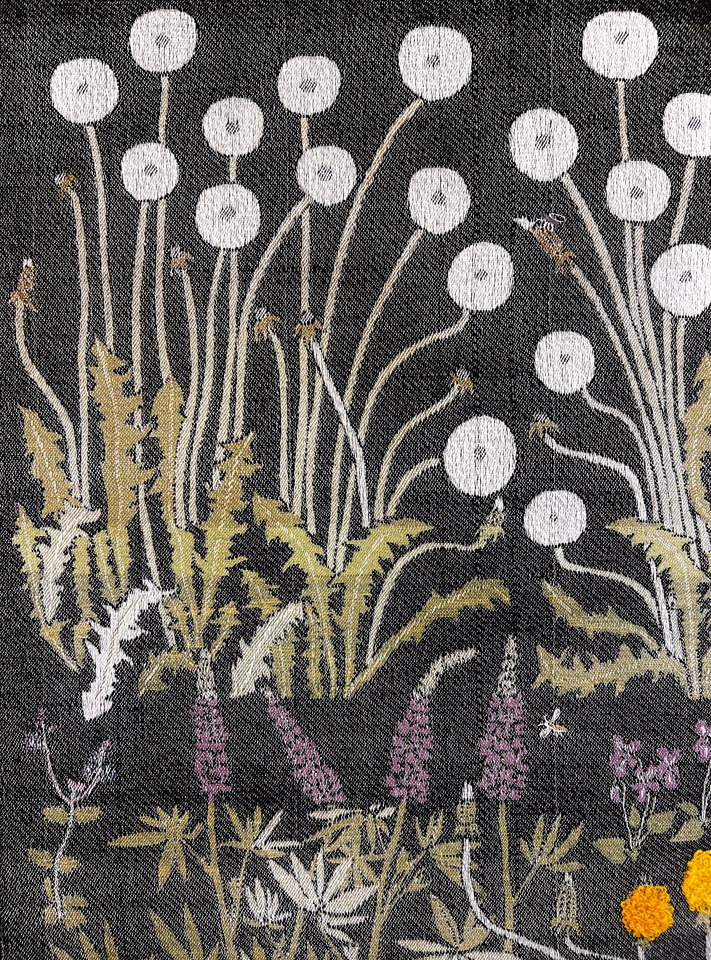 Other times, my work is more forgiving and results from a long research process that often starts with a place. Like with my project, Human Nature, a series of narrative tapestries about the changing landscape of Scandinavia: The work* Norrlands Flora in Colour* started with my childhood meadow, in the village of Vigge in northern Sweden.