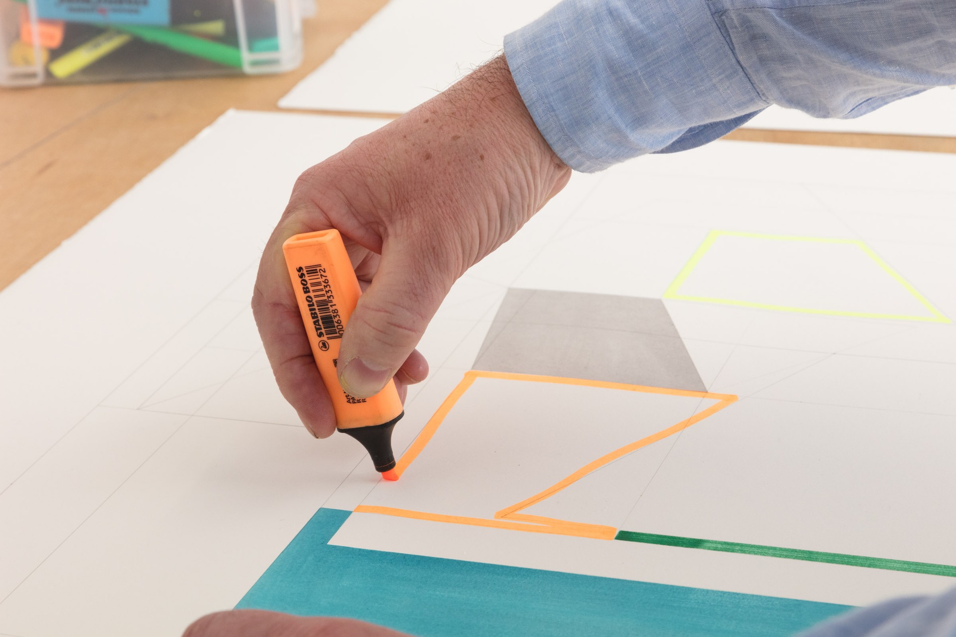 The artist uses various types of paint, encaustic, marker pen and pencil. The process of making each painting is like a performance, testing and documenting how far he can take the medium. Each is a modification or a variant on those made previously.
