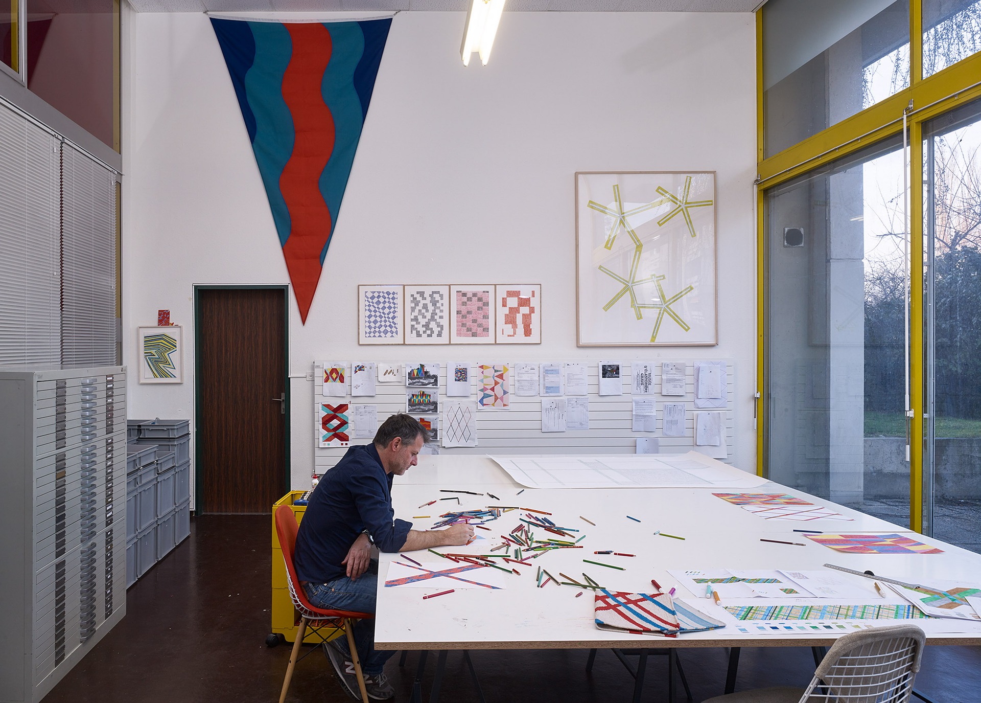 Projects relating to architecture work with volume and surface, as well as materials. Floor or wall-based paintings use specific materials, and my recent textile and ceramic objects are very linked to a sense of the material.